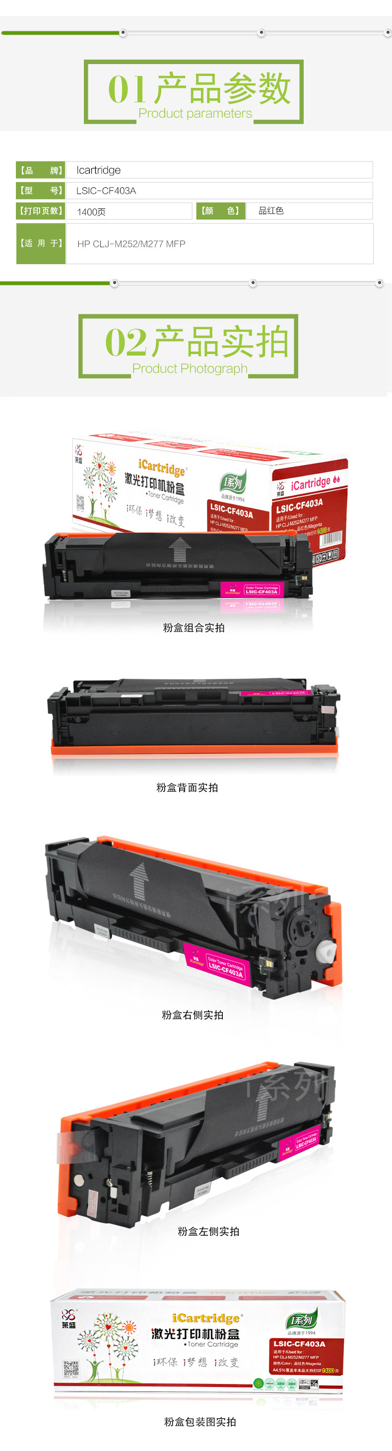 莱盛iCartridgeLSIC-CF403A红色粉盒适用于HPCLJ-M252/M277MFP 自营