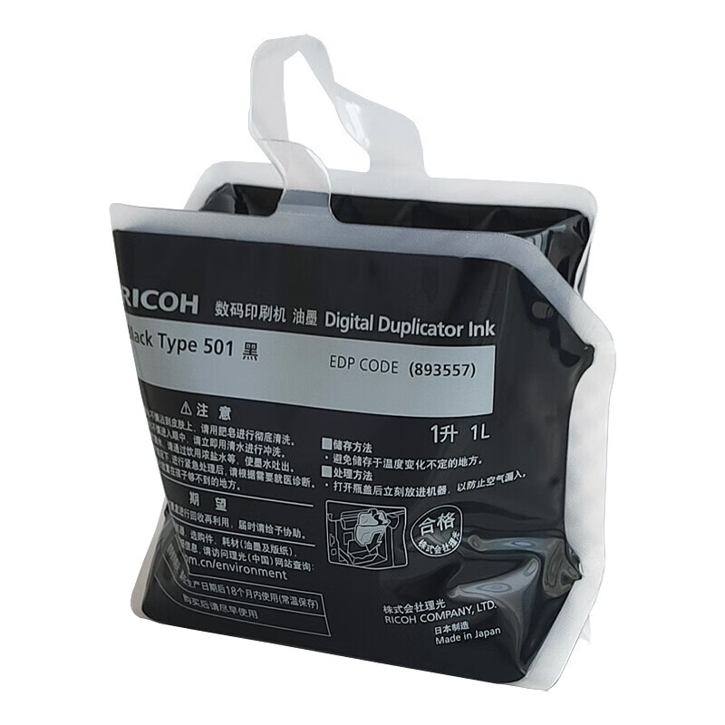 理光(Ricoh) 原装油印机数码印刷机速印机黑色油墨 黑油墨 501型(1000cc/袋) 自营