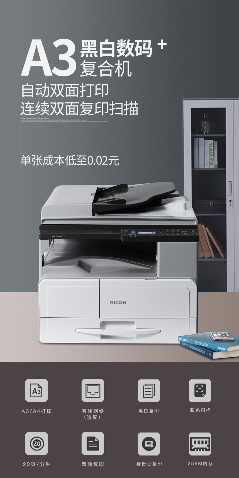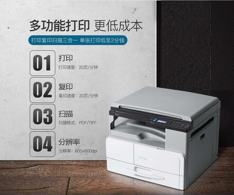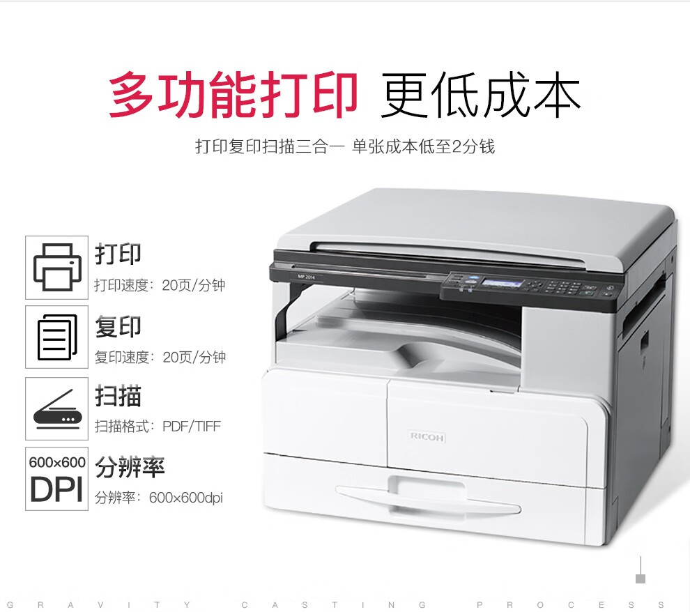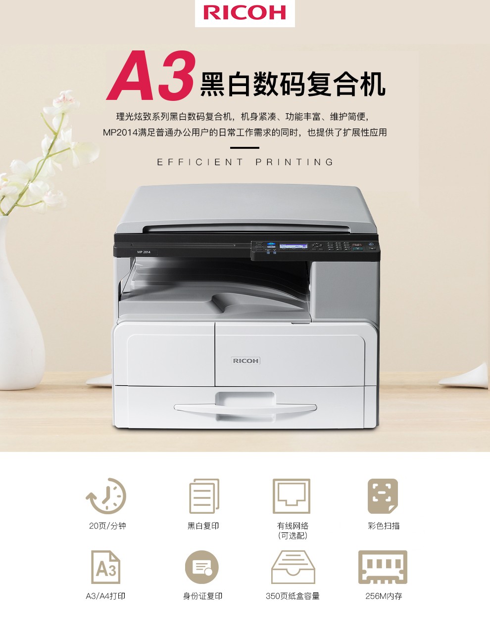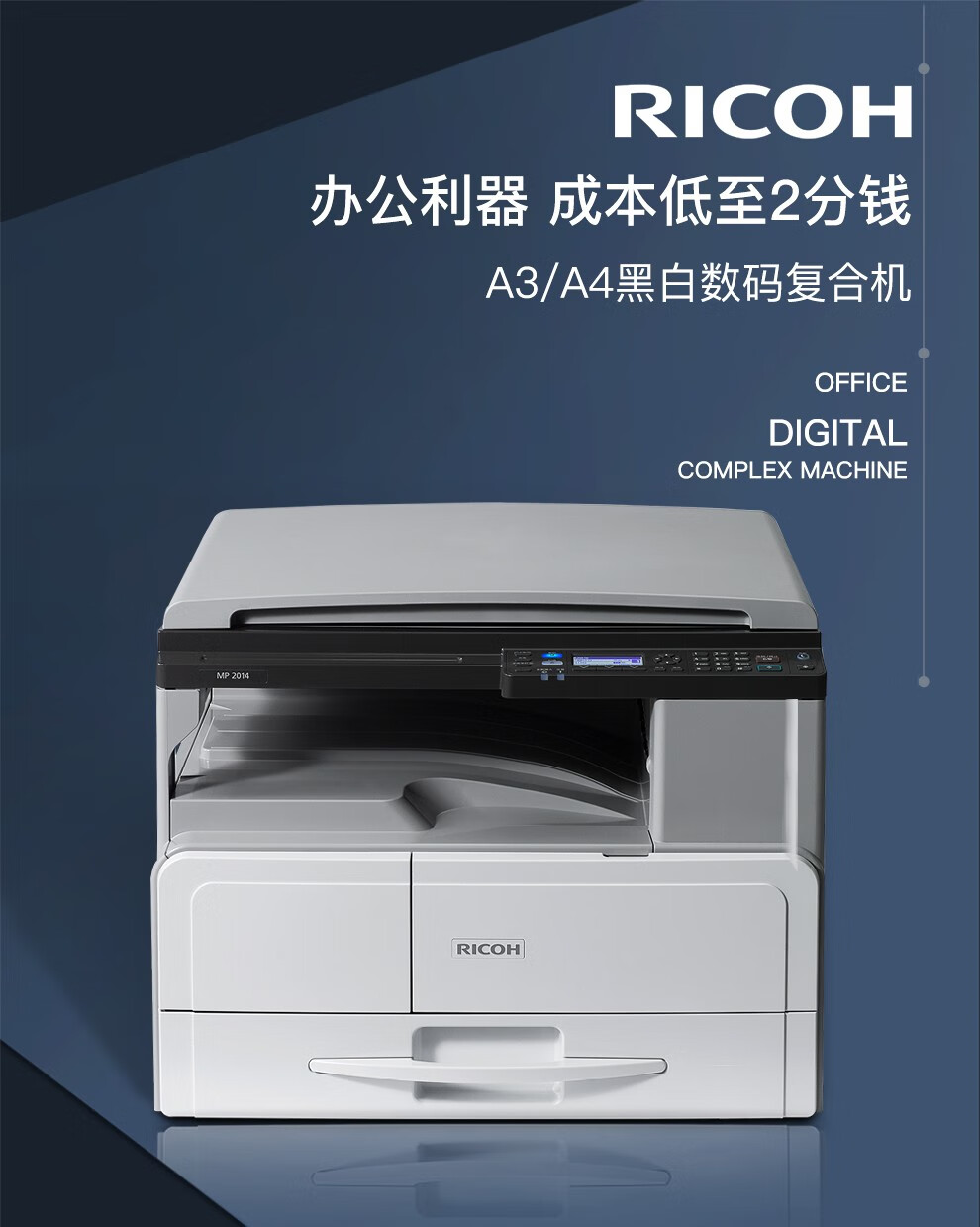 ¥7347.04理光 (Ricoh)黑白激光A3复印机一体机A3A4复合机打印复印扫描 MP2014 [单面打印/复印/扫描+网络] +加网络组件