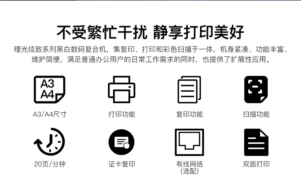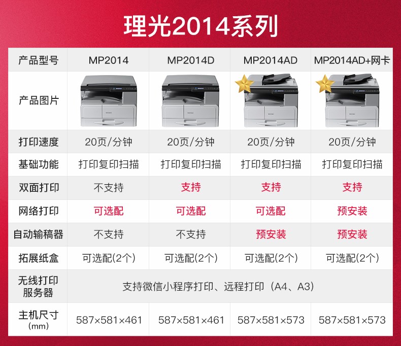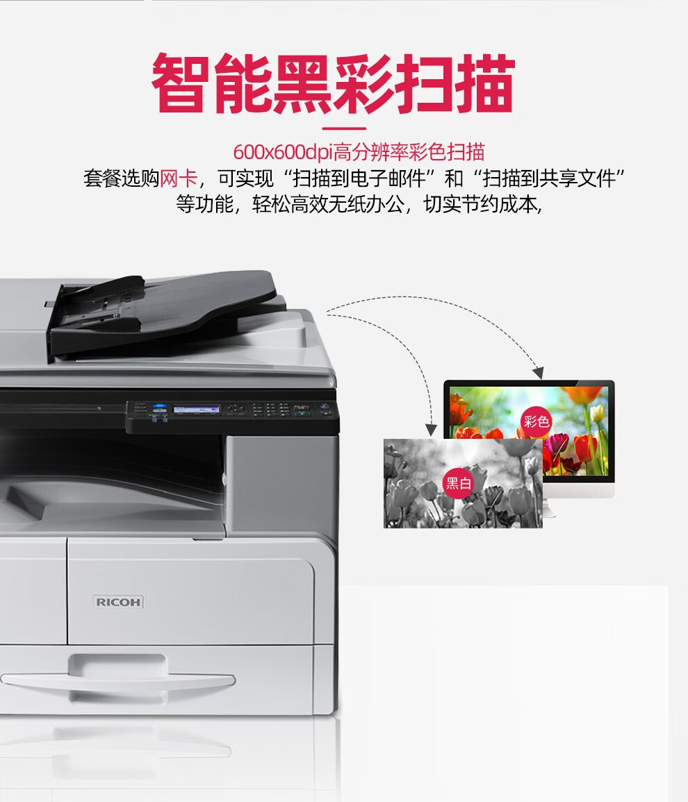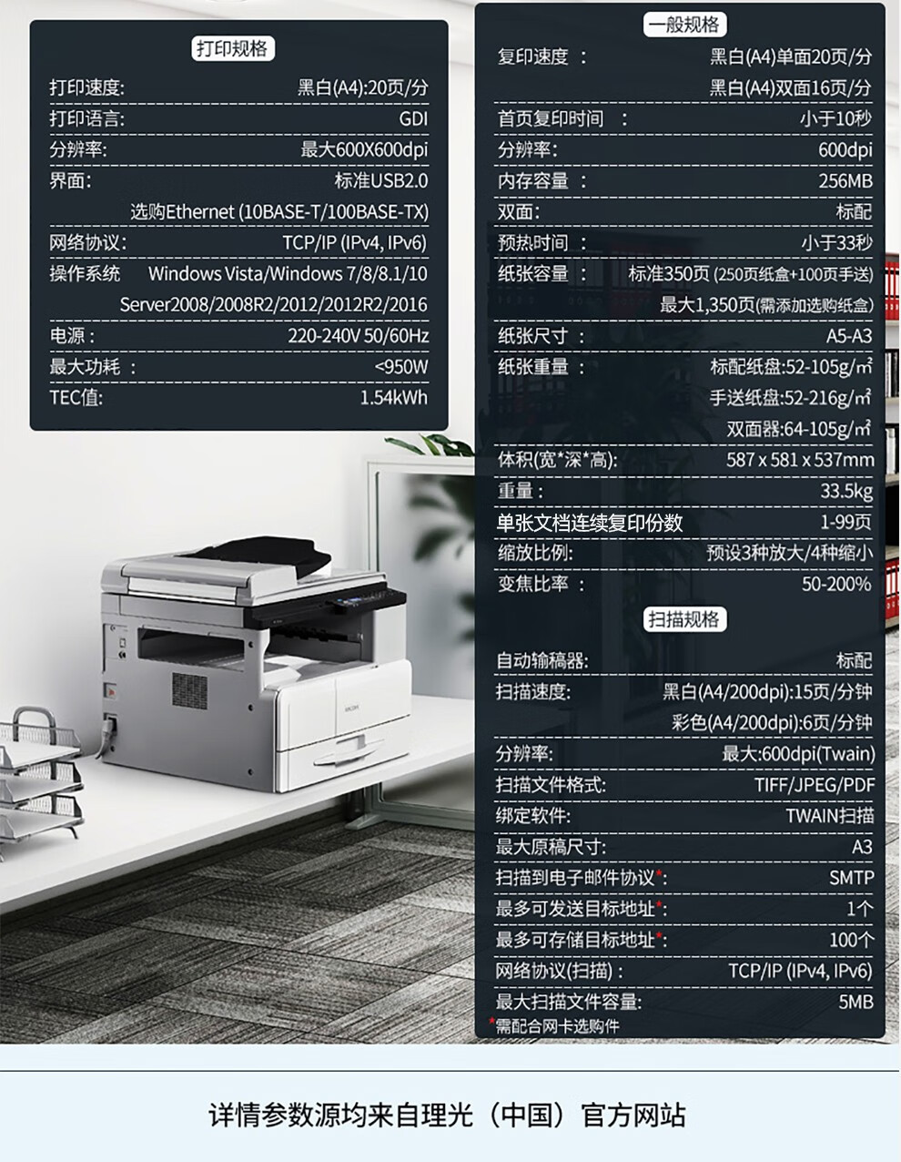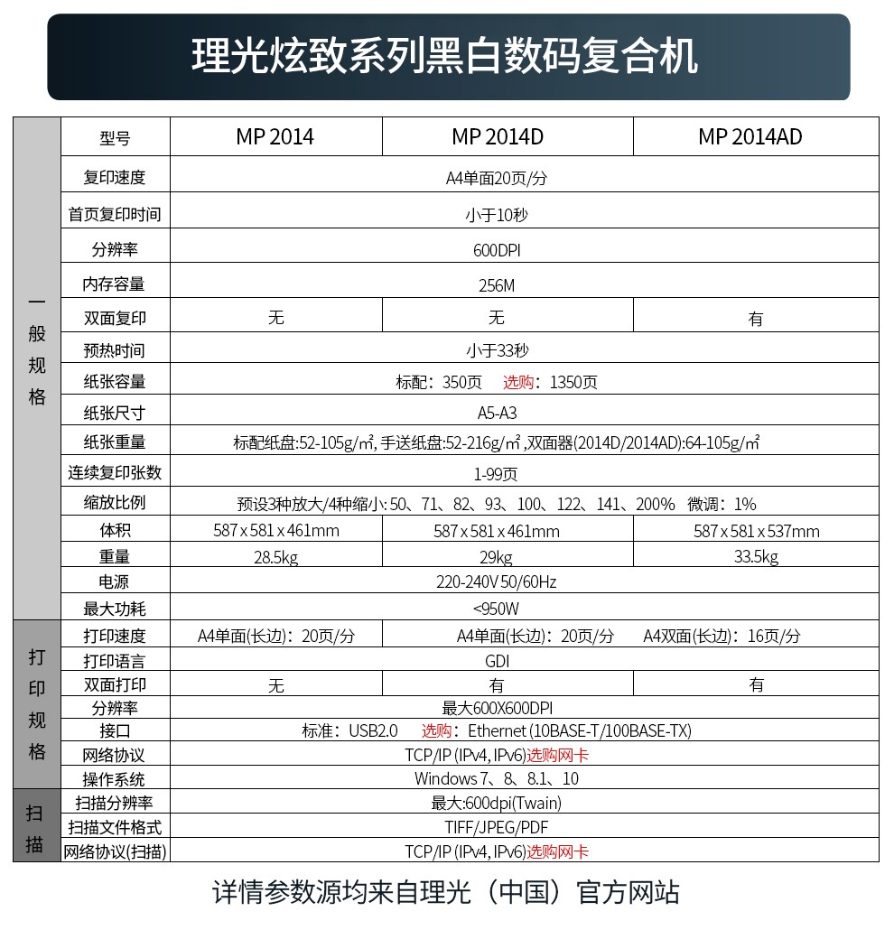 ¥7347.04理光 (Ricoh)黑白激光A3复印机一体机A3A4复合机打印复印扫描 MP2014 [单面打印/复印/扫描+网络] +加网络组件