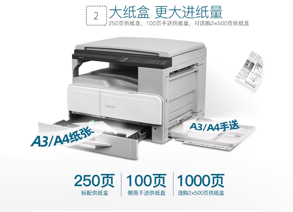 理光(Ricoh) MP2014AD黑白A3复印机办公复合机多功能一体机 (标配双面输稿器/双面器) 2014AD主机+第二纸盒