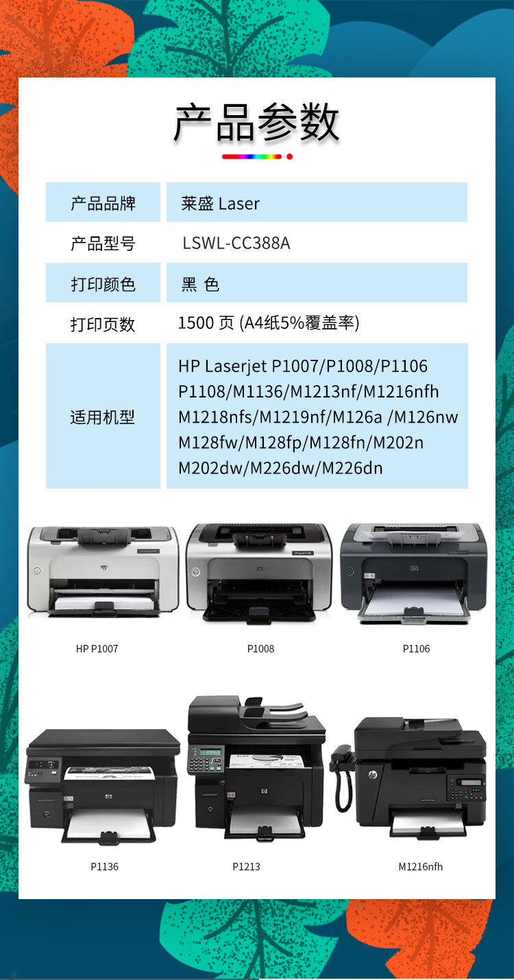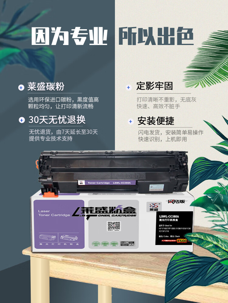 莱盛CC388A黑色硒鼓 适用于惠普HP P1007 P1008 1106 1108 1136 1213 1216 打印机墨盒 自营