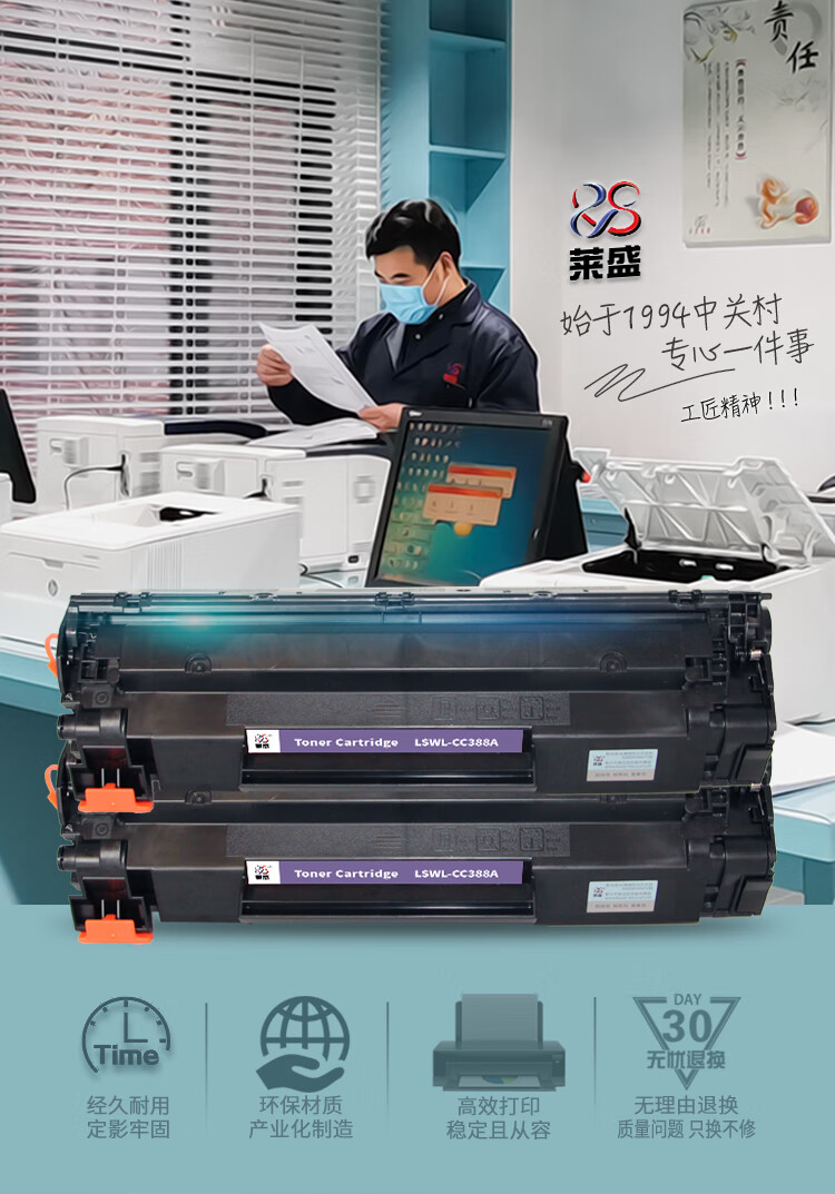 莱盛CC388A黑色硒鼓2支装 适用于惠普HP P1007 P1008 1106 1108 1136 1213 1216 打印机墨盒 自营