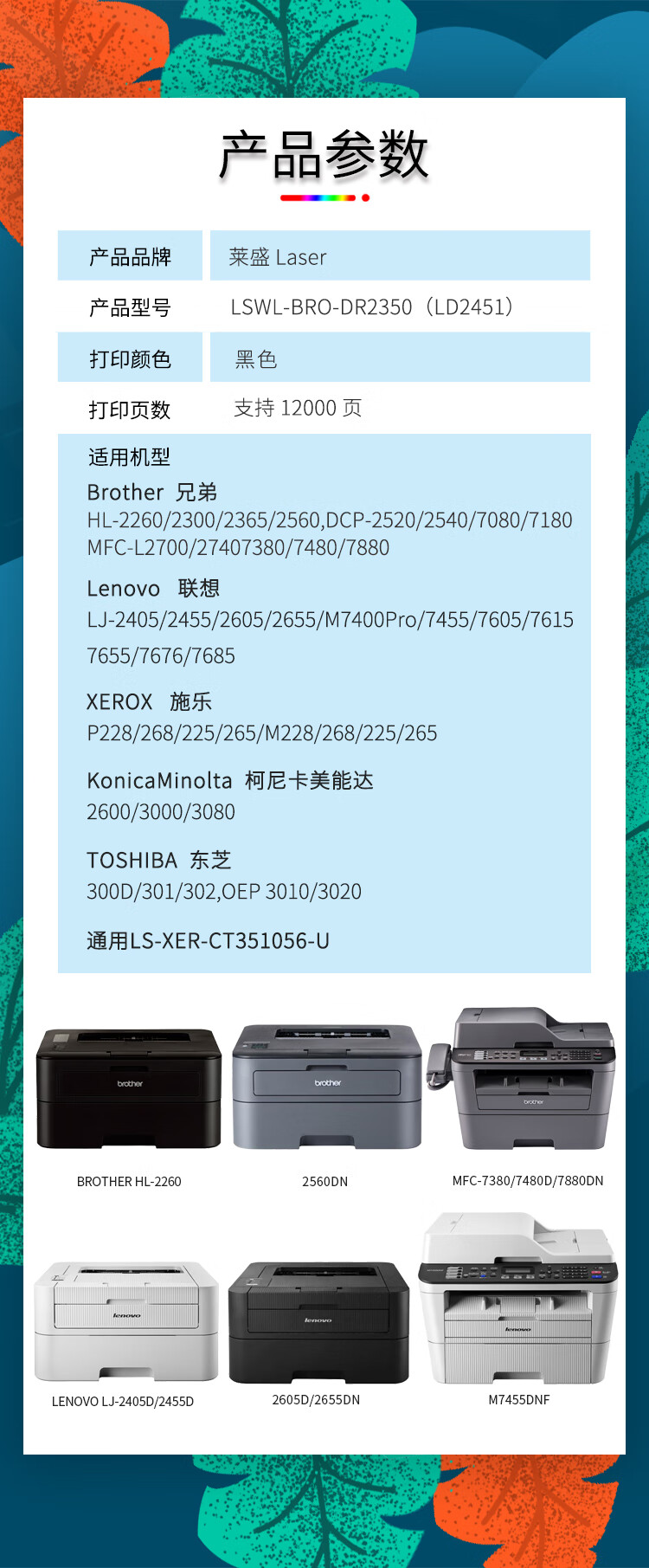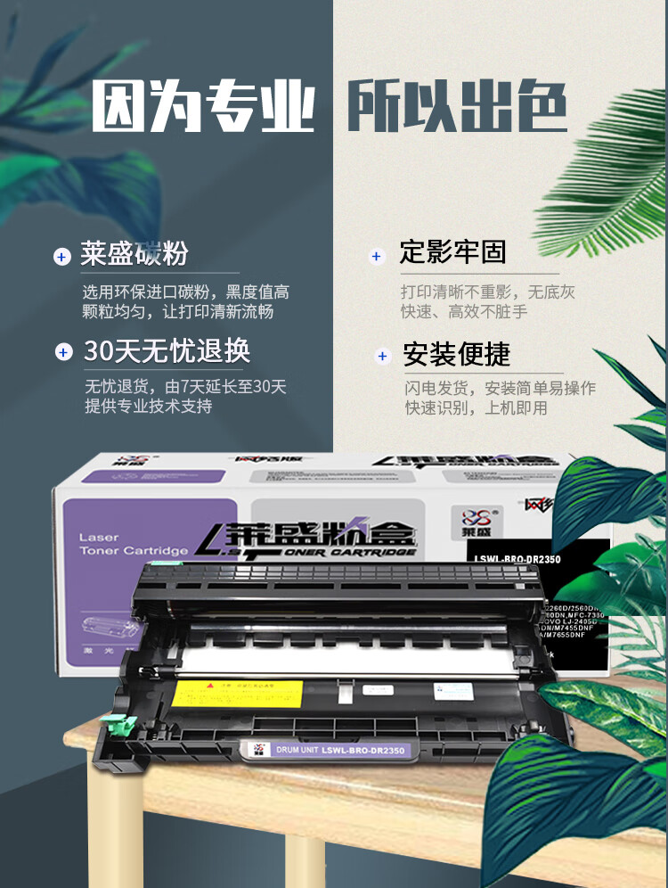 莱盛DR2350(LD2451)硒鼓组件 适用兄弟2260 7180 7380 7480联想2405 M7455 7615施乐P228 268 225 鼓体单元 自营
