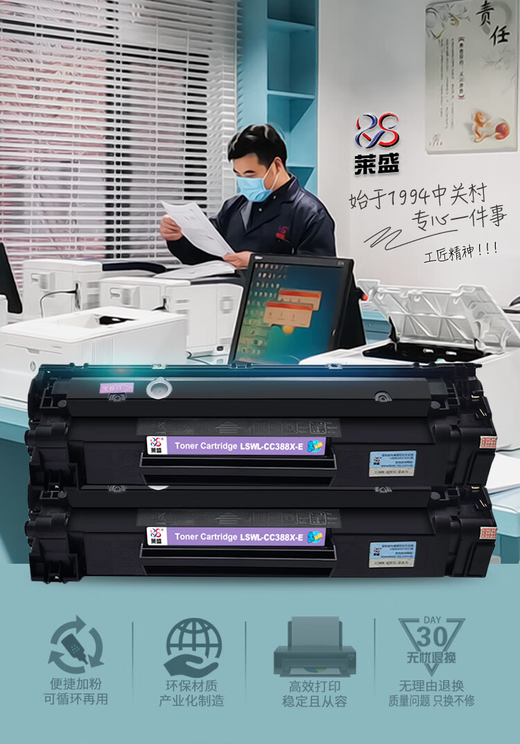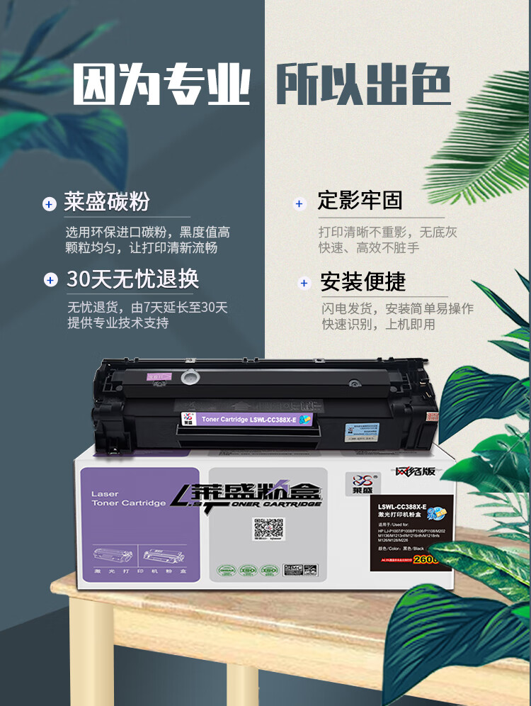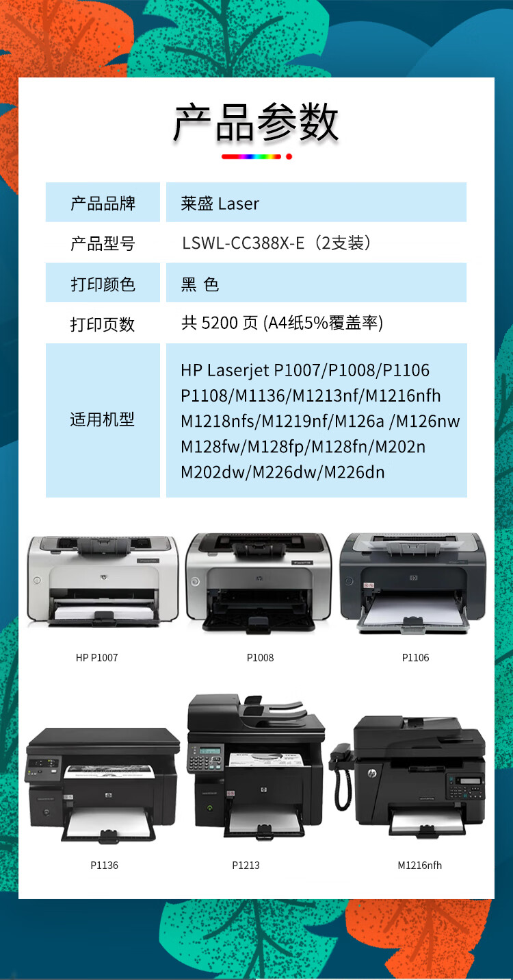 莱盛CC388A易加粉硒鼓黑色2支装 适用于惠普HP P1007 P1008 1106 1108 1136 1213 1216 M126 M128打印机墨盒 自营
