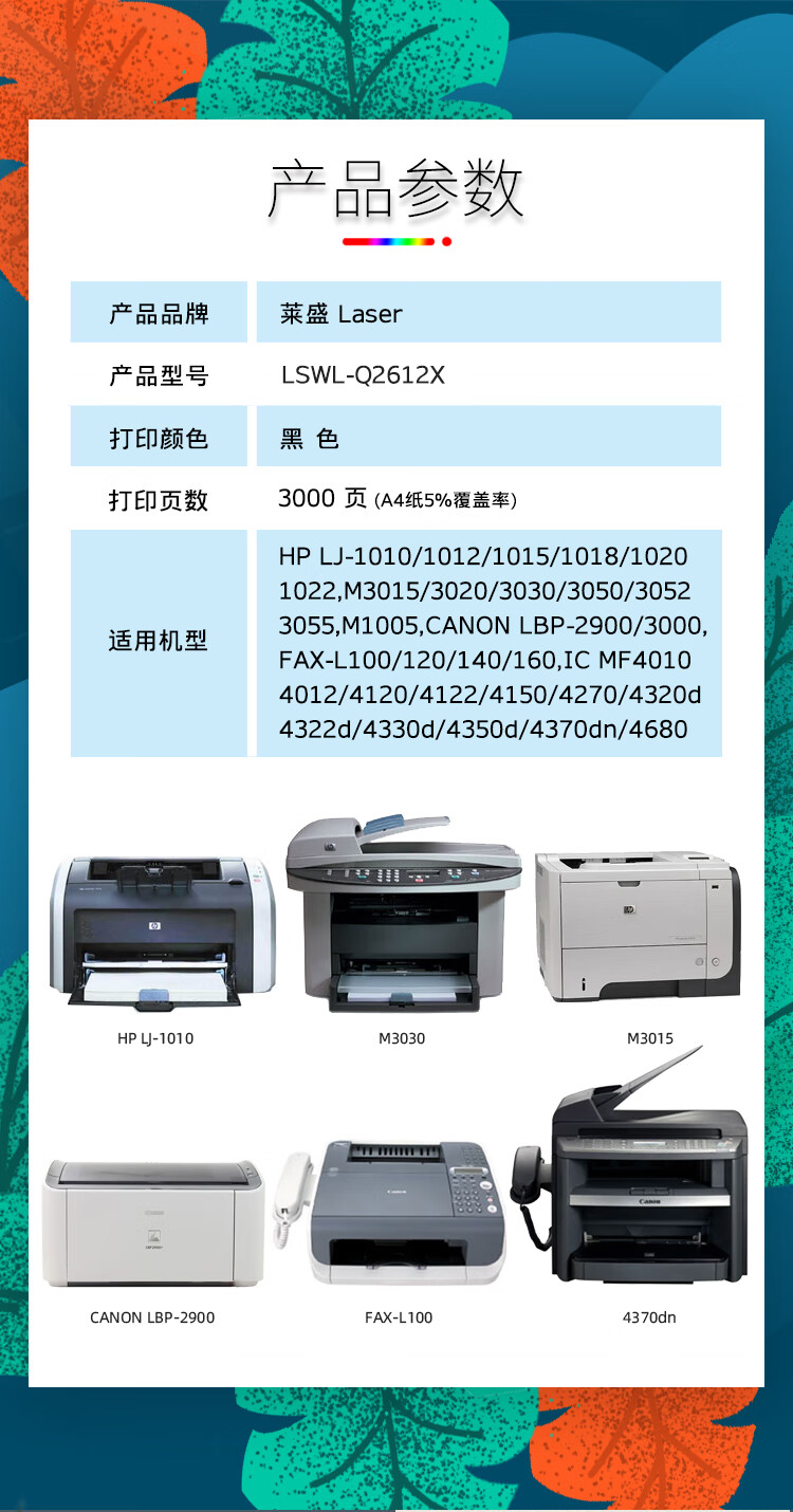 莱盛Q2612A大容量硒鼓 适用惠普HP 1010 1012 1015 1018 1020 1022 佳能 2900 MF4010 4680 粉盒 打印机墨盒 自营