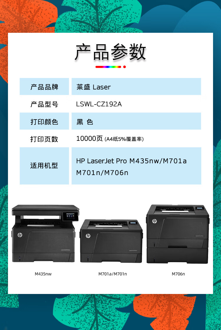 莱盛CZ192A硒鼓93A大容量粉盒 黑色单支装 适用于HP LaserJet Pro M435nw M701a M701n M706n 打印机粉盒 自营