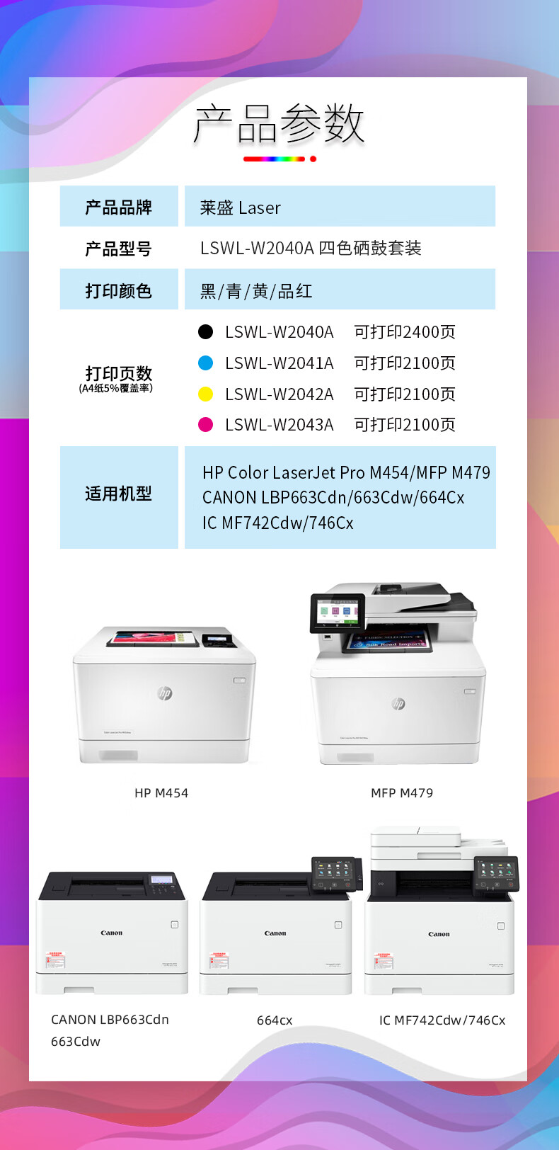 莱盛W2040A四色硒鼓套装 适用于惠普HP M454 M479,佳能CANON LBP663 664Cx,IC MF742Cdw 746Cx打印机墨盒 自营