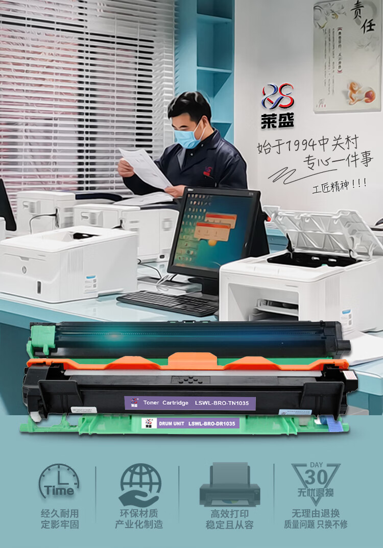 莱盛DR1035/TN1035(粉盒+硒鼓组件套装)适用兄弟1118 1208 1218 m7206联想s1801 LT201打印机粉仓LD201硒鼓 自营