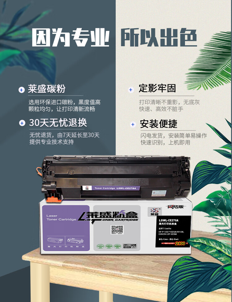 莱盛CE278A黑色硒鼓 适用于惠普HP P1566 P1606dn M1536 佳能CANON LBP-6200d 打印机墨盒 自营